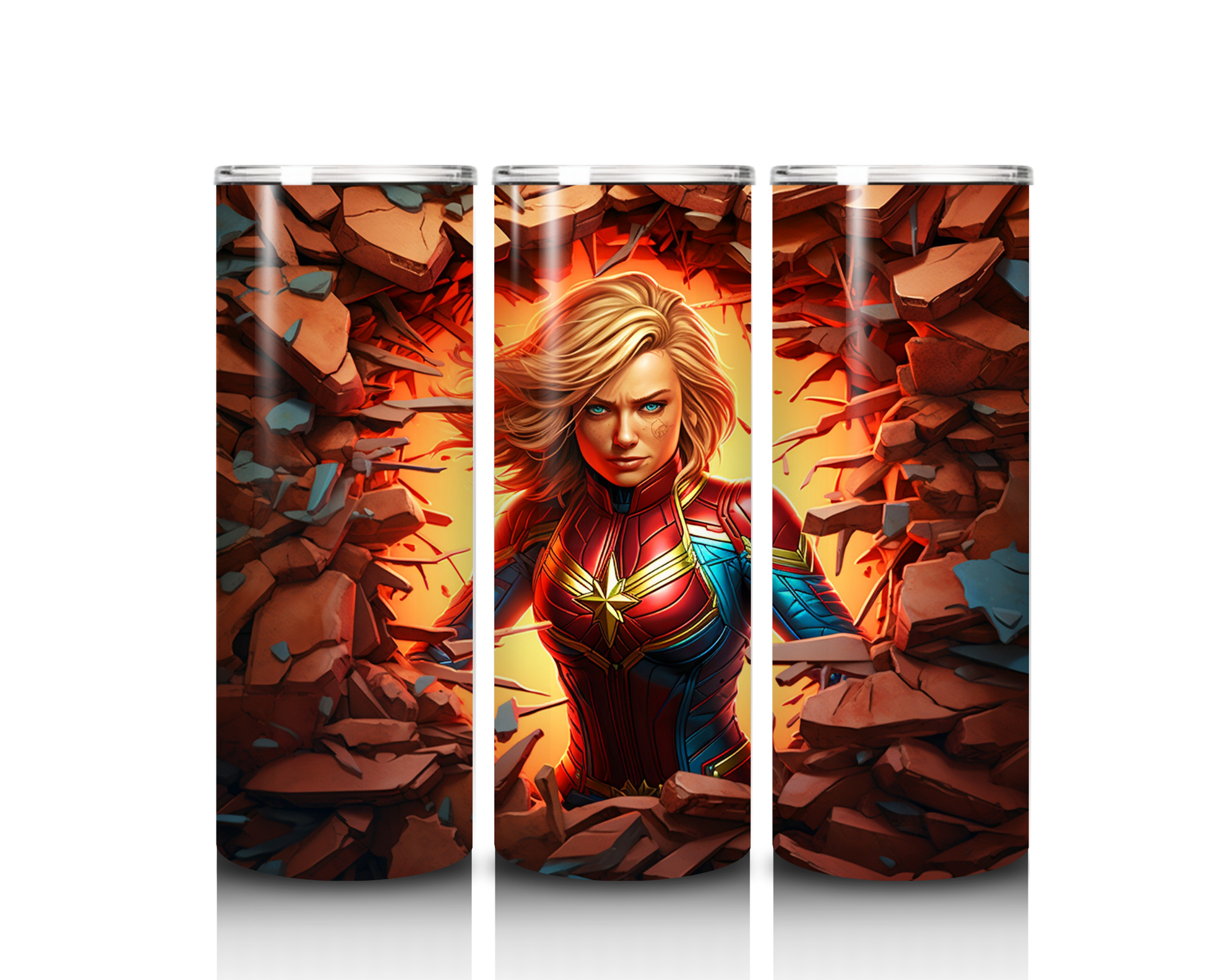 Quench your thirst with the 20 oz Captain Marvel Tumbler, perfect for keeping your drinks cold and your style on point. Emblazoned with the iconic superhero's logo, this tumbler is a must-have for any fan on-the-go. Stay hydrated in heroic fashion with this sleek and convenient tumbler.