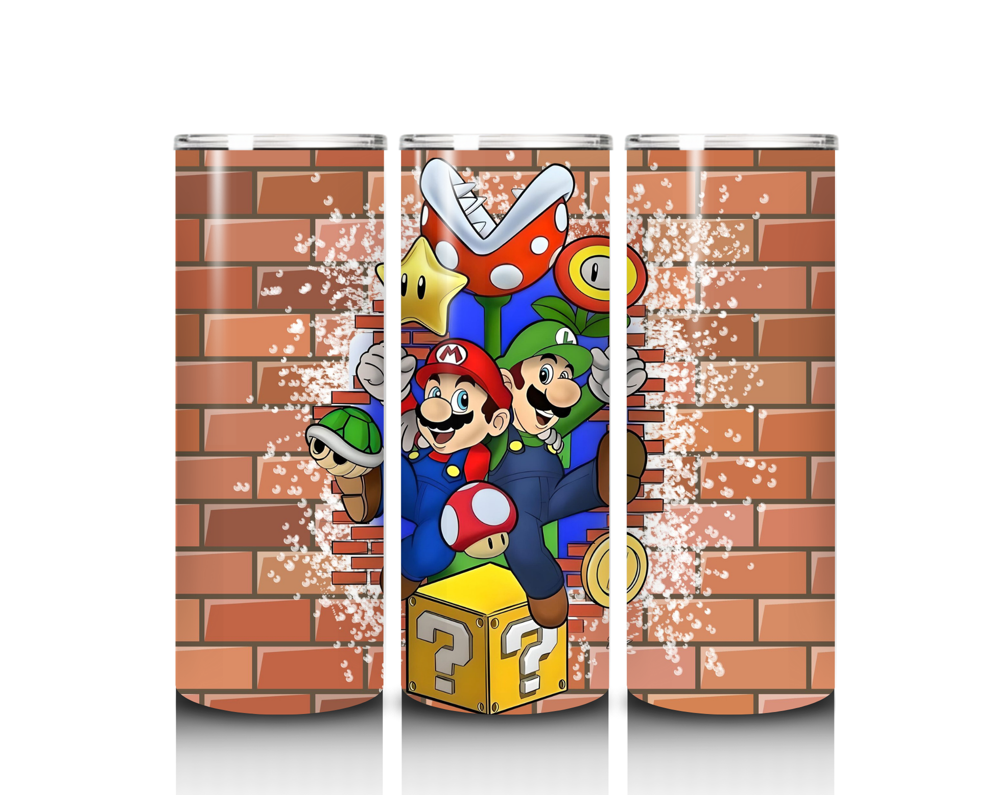 Experience your favorite drink in a whole new way with our 20 oz Mario Bros Wall Break Tumbler! Featuring the iconic Mario Bros characters, this tumbler is perfect for on-the-go or at home. Its 20 oz capacity allows for ample refreshment and its durable design ensures long-lasting use. Sip in style with this must-have tumbler!
