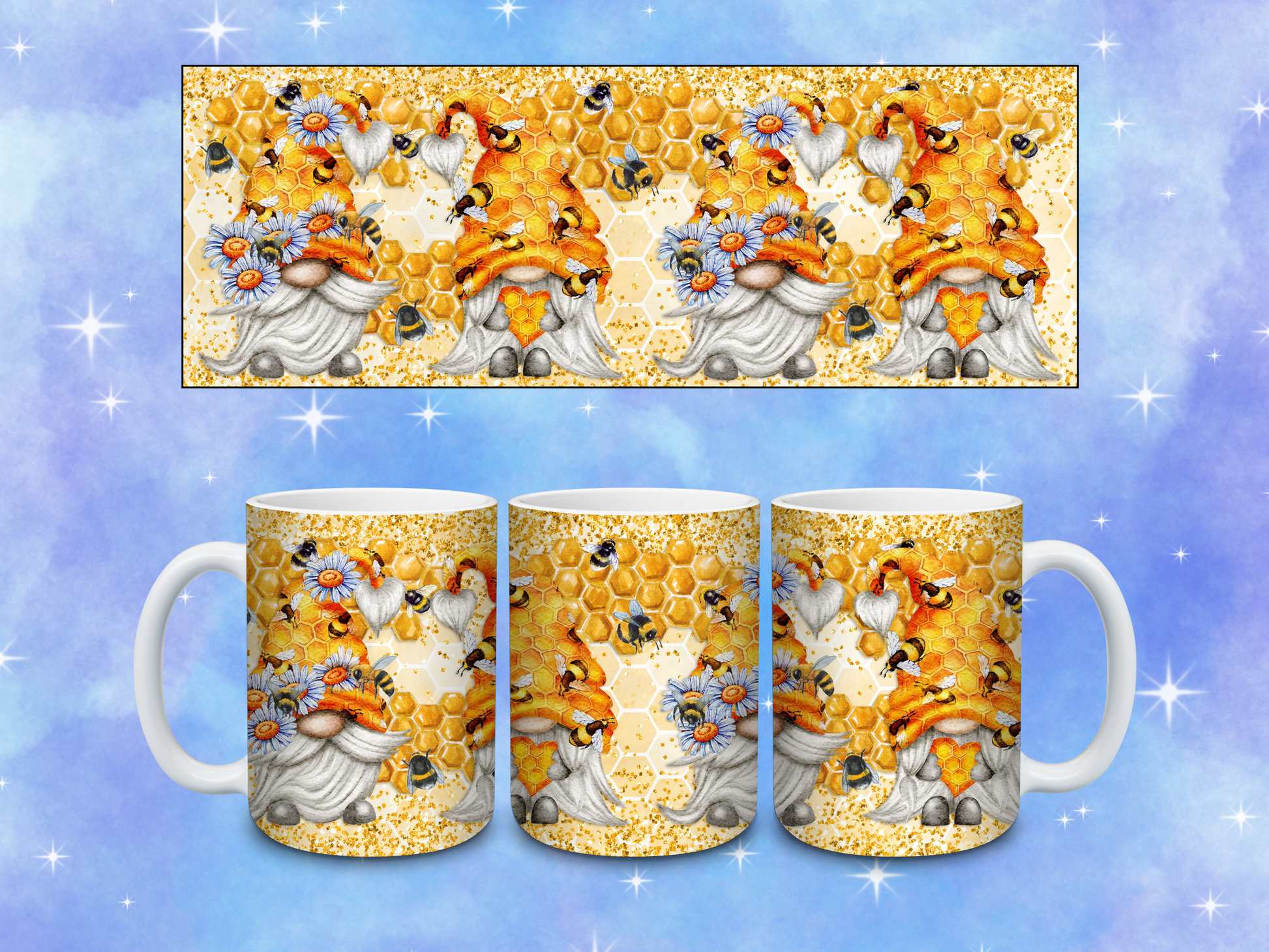 Sip your morning brew with our adorable Honey Bee Gnome Coffee Mug! This whimsical ceramic companion features a cheerful garden gnome dressed in bee-themed attire, complete with striped details and tiny wings. Perfect for garden enthusiasts and bee lovers alike, this charming mug brings a buzz of joy to your daily coffee ritual. Makes a sweet gift that's sure to create quite the buzz!