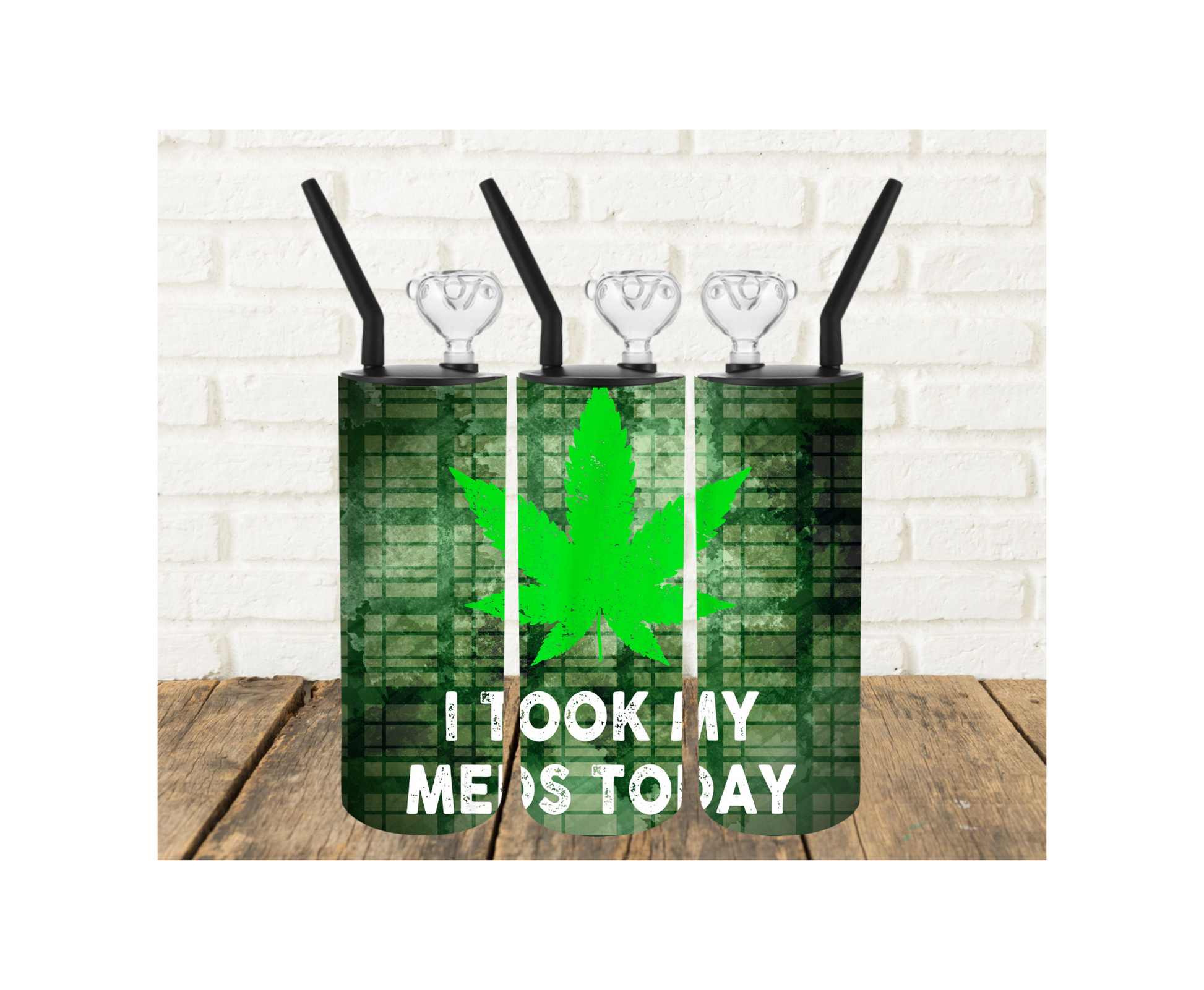 Enjoy your favorite herbs with a smile using the I Took My Meds Today 420 Tumbler Pipe. This cleverly designed piece combines a tumbler’s convenience with a pipe’s function, making your sessions both fun and functional. Perfect for those who appreciate a little humor with their relaxation, it’s a great conversation starter and a unique addition to your collection. Take your meds and your good vibes wherever you go!