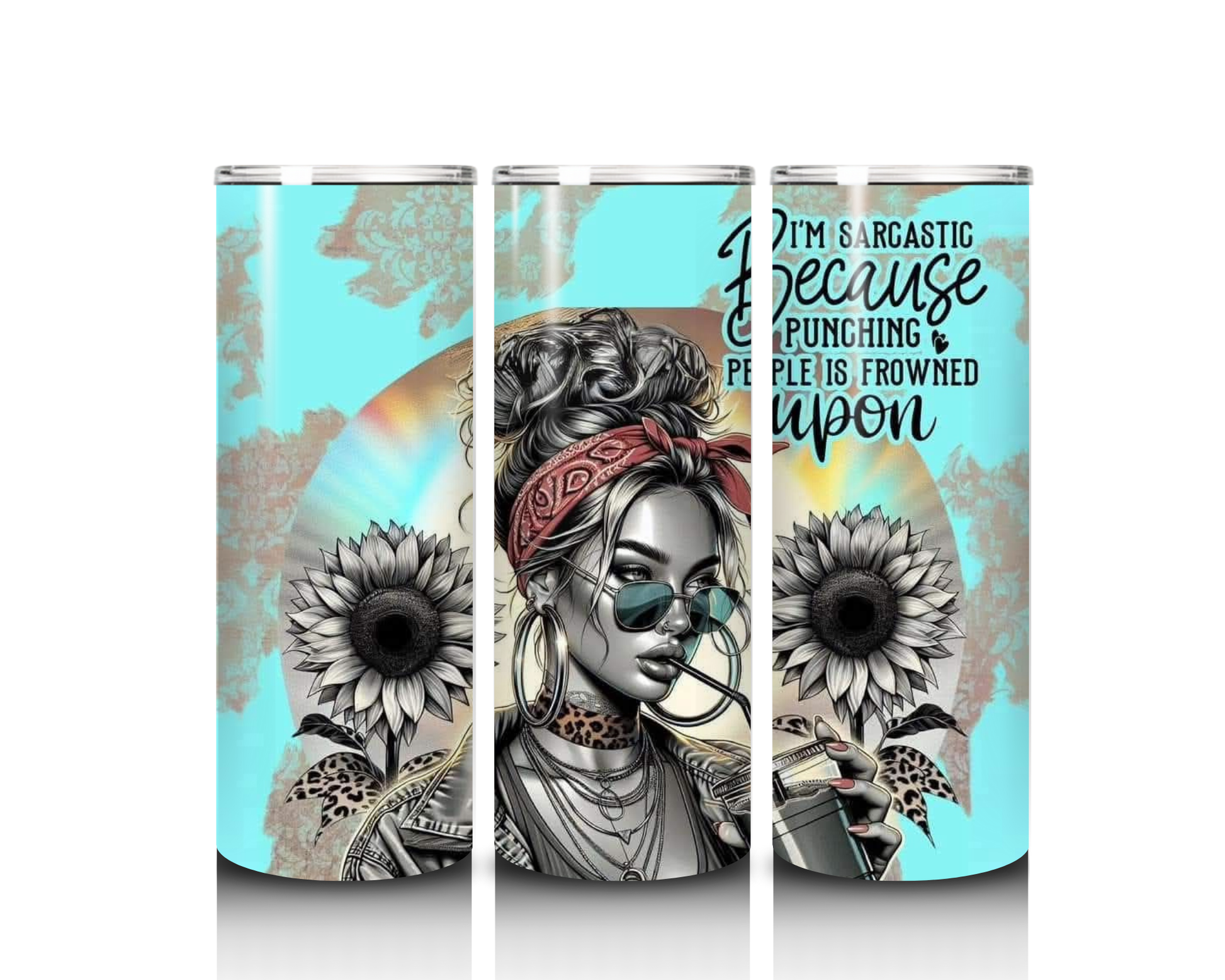 Show off your witty side with the "I'm Sarcastic Because..." tumbler. Perfect for sipping your favorite drink while delivering a playful hint about your sense of humor. Durable and stylish, it’s a fun way to keep your beverages at the right temperature and your personality front and center.