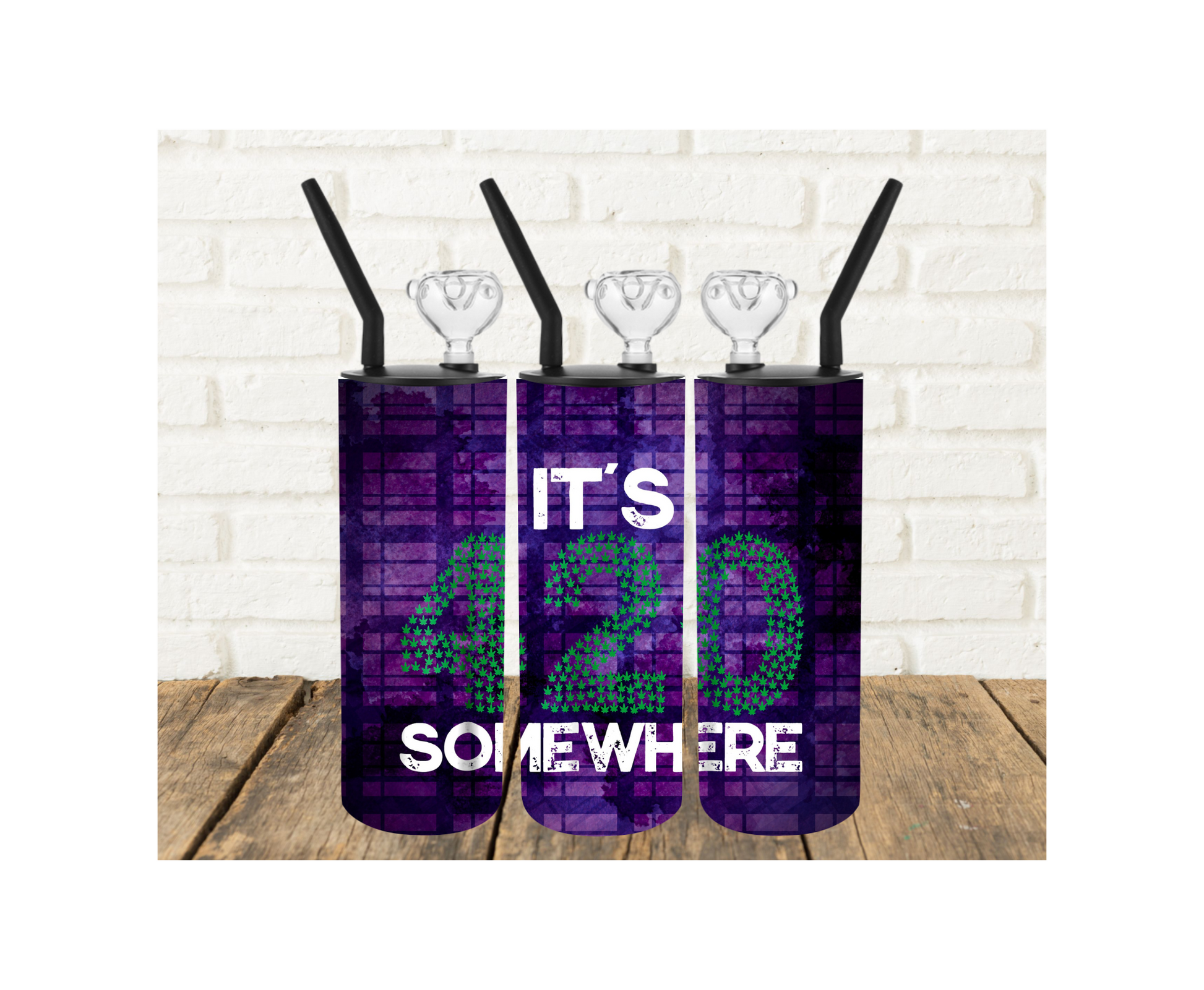 Enjoy your favorite moments with the It's 420 Somewhere Tumbler Pipe, a fun and functional accessory designed to keep your drinks and vibes elevated. Perfect for those who appreciate a playful twist, this tumbler pipe combines convenience and style, making every sip a celebration. Whether relaxing solo or sharing with friends, it’s always 420 somewhere!