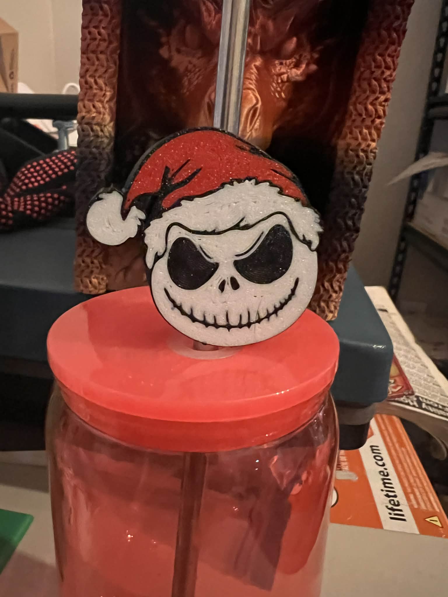 Meet your new favorite holiday accessory! This whimsical Skellington Santa Straw Topper brings festive flair to any beverage. Perfect for seasonal drinks, holiday parties, or adding a touch of spooky-seasonal charm to your everyday sips. Whether you're a Tim Burton fan or just love mixing Halloween and Christmas vibes, this playful topper transforms ordinary drinkware into conversation-starting décor. Durable and reusable, it's an eco-friendly way to celebrate the most wonderful (and delightfully eerie) time of year.