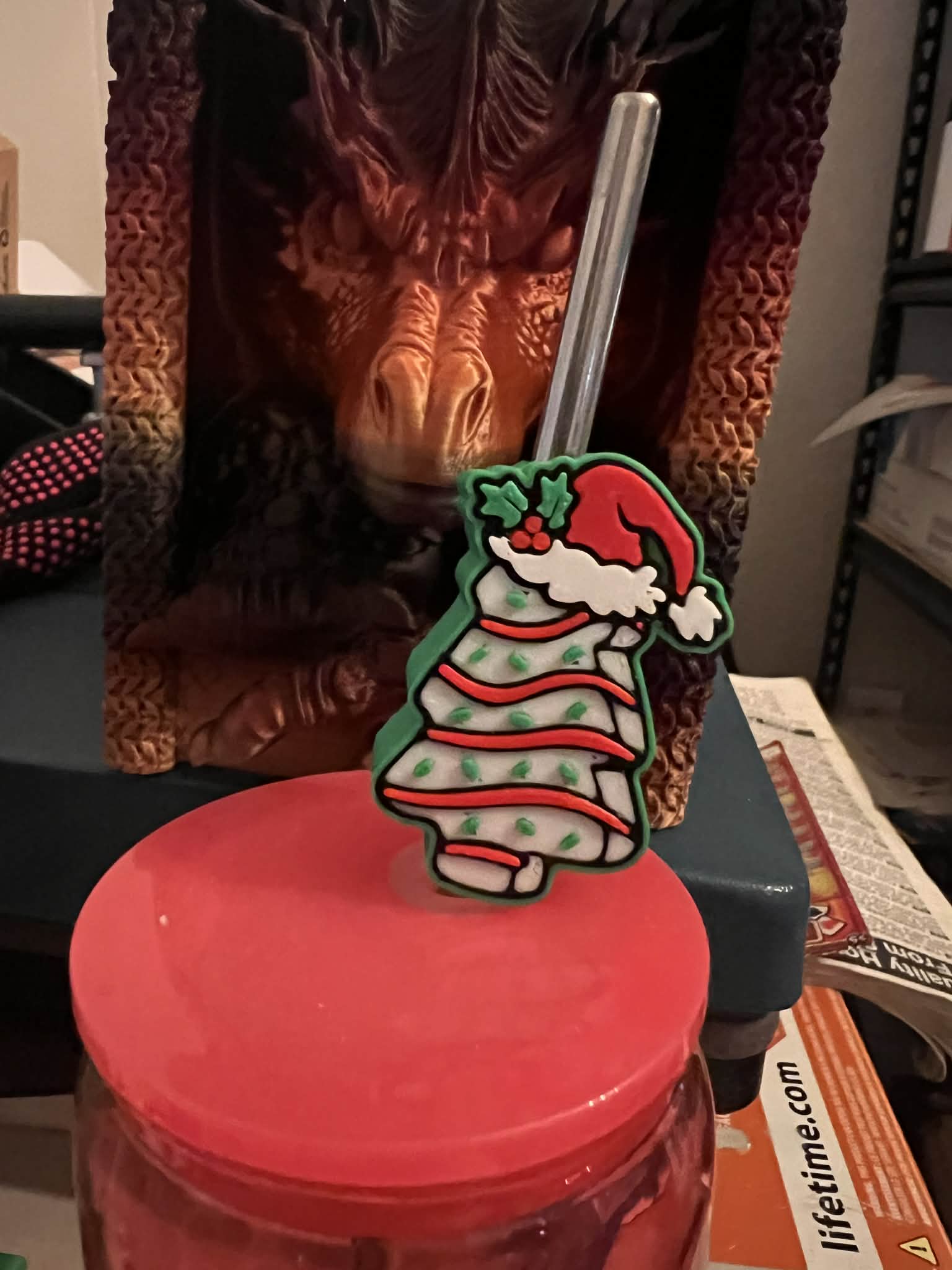 Snack Cake Tree and Santa hat Straw Topper